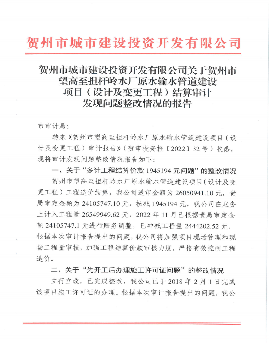 下一篇:城投公司關(guān)于城區公交站(亭)建設項目結算審計發(fā)現問(wèn)題整改情況的報告